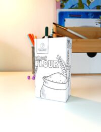 FLOUR – pudełko-kolorowanka do złożenia – mąka po angielsku – PDF do pobrania