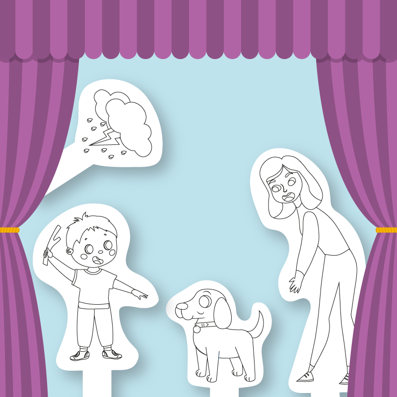 TEATRZYK KUKIEŁKOWY – “Burzowa PSYgoda” – w wersji do pokolorowania.