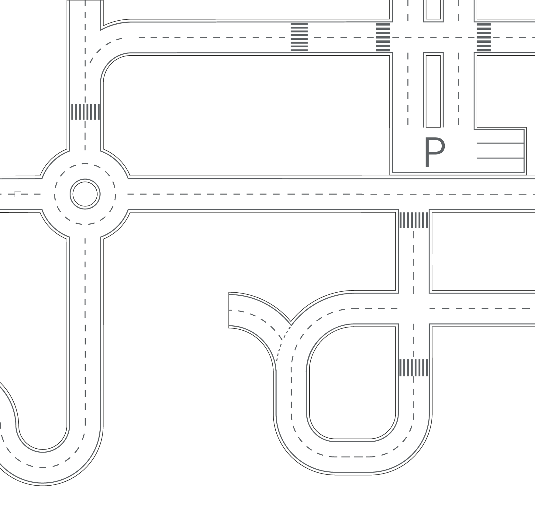Ulice posiadają puste miejsca/przestrzenie, przygotowane do dowolnego stawiania dodatków: domków, świateł, znaków, samochodów i innych elementów do pełnej zabawy w miasto.