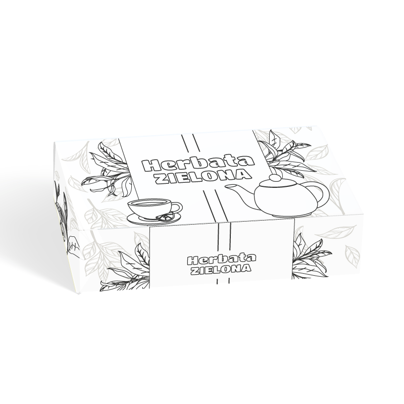 HERBATA zielona – pudełko-kolorowanka do zabawy w sklep.