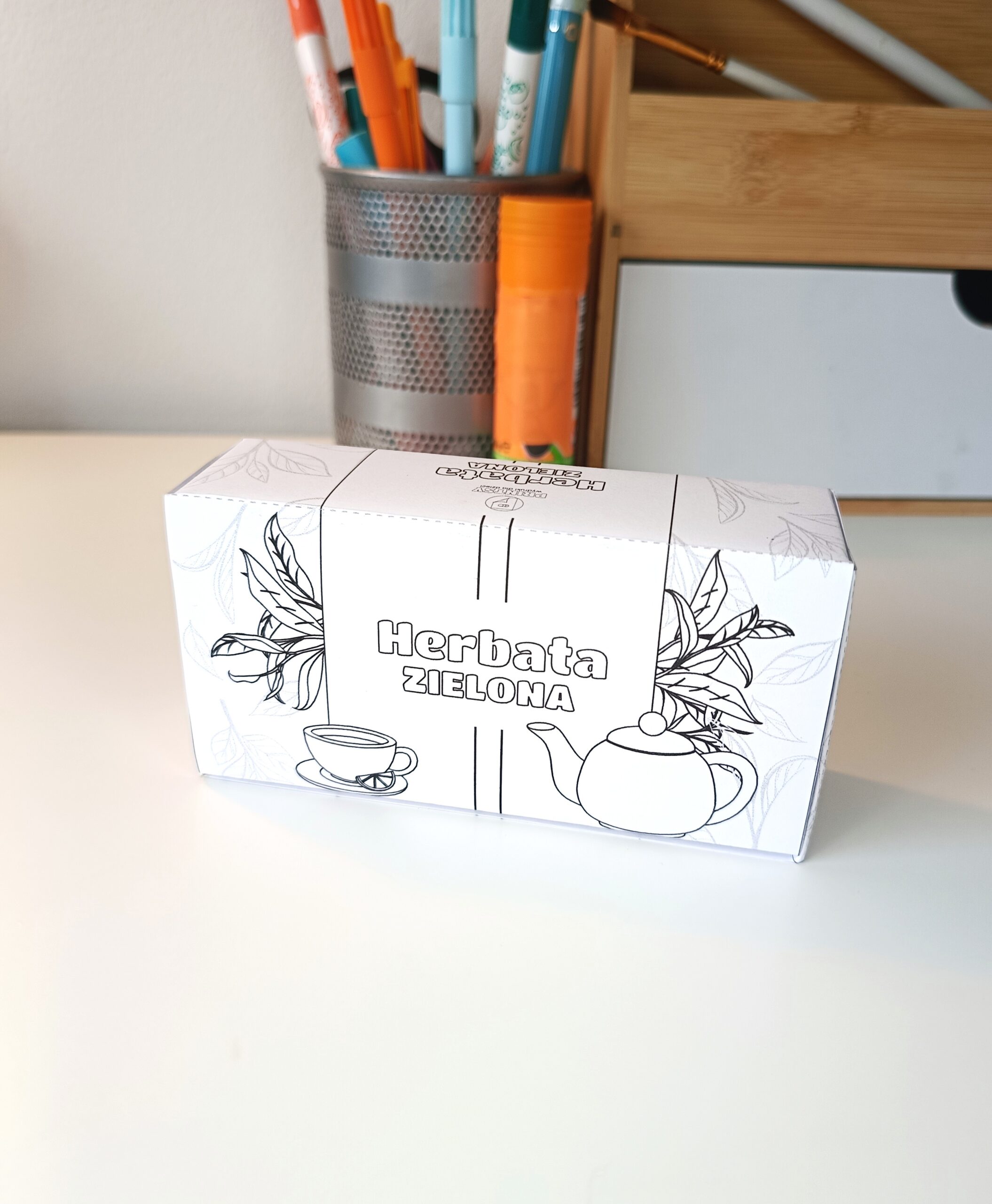HERBATA – pudełko-kolorowanka do złożenia – PDF do pobrania