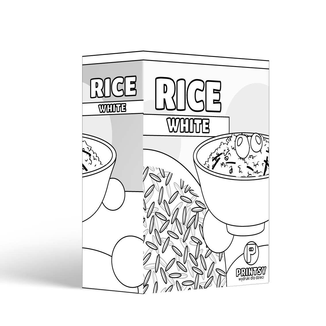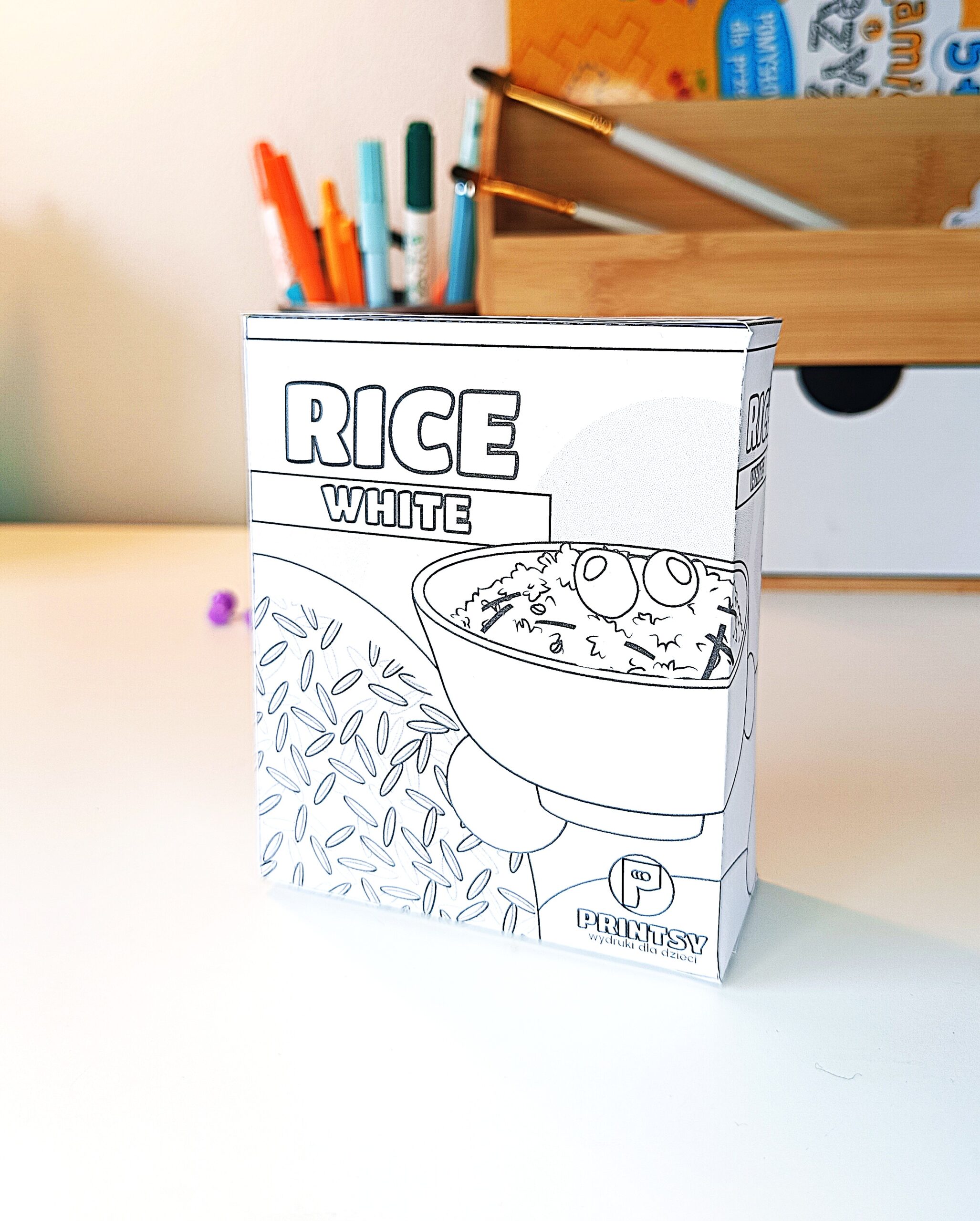 RICE (ryż) – pudełko-kolorowanka do zabawy w sklep w języku ANGIELSKIM.