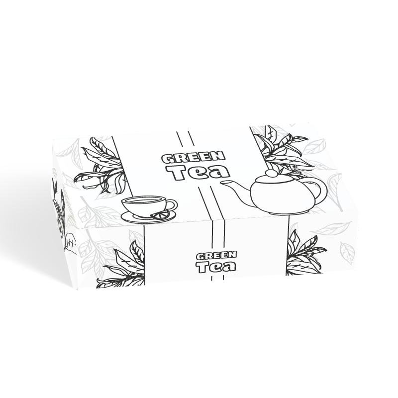 GREEN TEA (zielona herbata) – pudełko-kolorowanka do zabawy w sklep w języku ANGIELSKIM.
