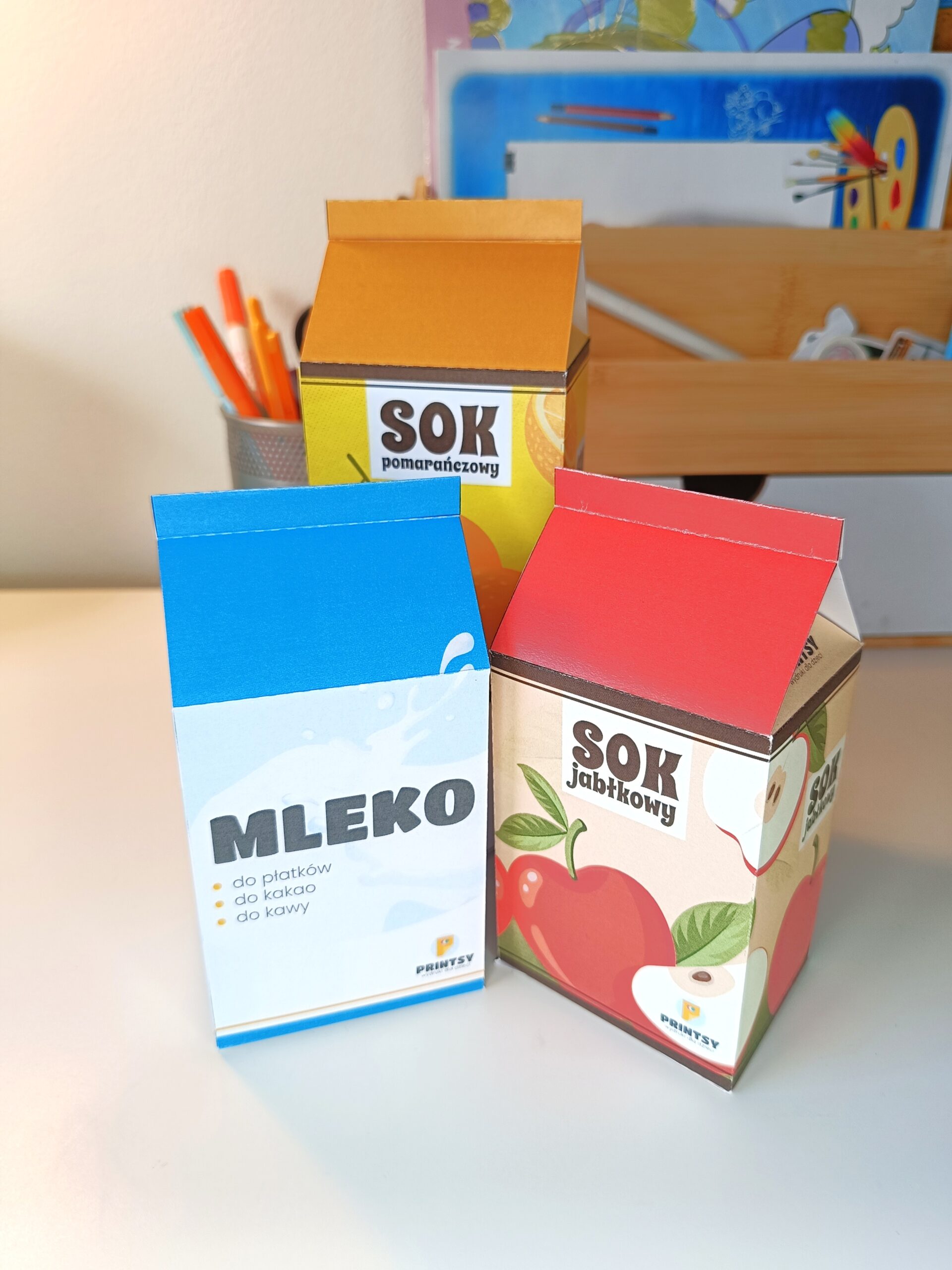 ZESTAW napojów: soki i mleko – 3 pudełka do złożenia – PDF do pobrania
